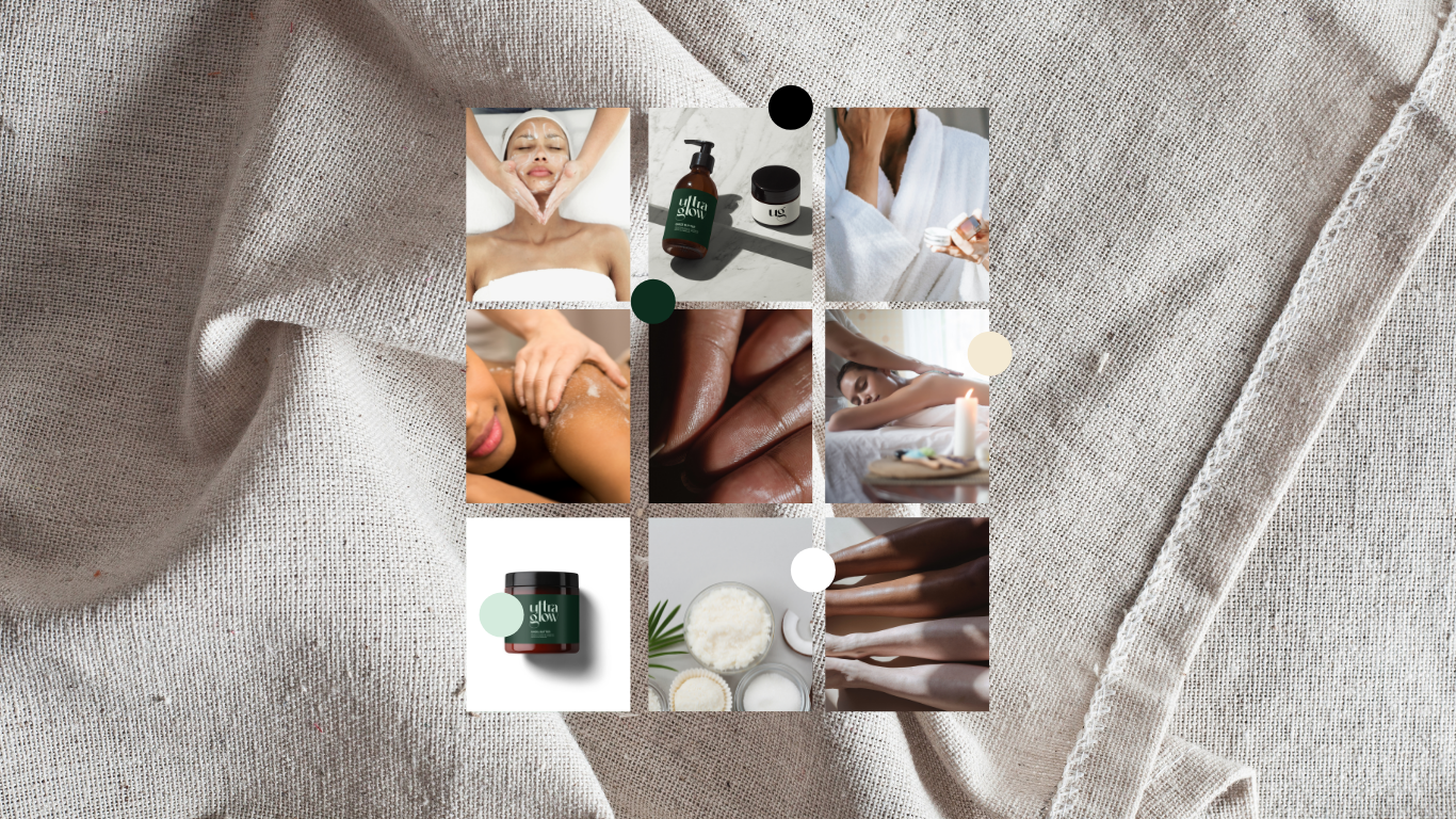 Client: Official Ultra Glow Project Title: Luxury Organic Skin Care Design and Logo Redesign Role: Brand and Packaging Designer Credits: Photographer Stockx, Ron Lach Project Overview/ Goals : Ultra Glow is a non-invasive and comprehensive full service unisex beauty spa. Since starting and expanding her South Florida clientele, the client developed a line of organic skincare products to use throughout her services. With discovery, it was clear that the goal of the project was to create a captivating luxury experience for the product. Although the client wanted a standout approach, she wanted to keep the brand minimalistic and very clean for her targeted audience. After completing a competitive analysis, it was clear that other brands steered to more of a plant-forward design approach. Several companies used plants/flowers and lighter greens to convey the use of organic products rather than bodies and/ bold colors. With this knowledge I created useful mood boards of movement and body positivity. For color I challenged the idea of deep greens, creams and blacks which contrasted well together, and gave more of a high-end encounter; perfectly gauged for the targeted audience. Pain Points: Although the brand held a reputable existing brand name it lacked identity and exposure. The client felt that before presenting the products to market it was imperative to create a cohesive design to match the quality of the product. Deliverables: Brand Identity Guideline, Logo Suite, Product and Packaging Labels Primary Tools: Adobe Illustrator, Artboard Studio, Procreate, Color Theory, Typography
